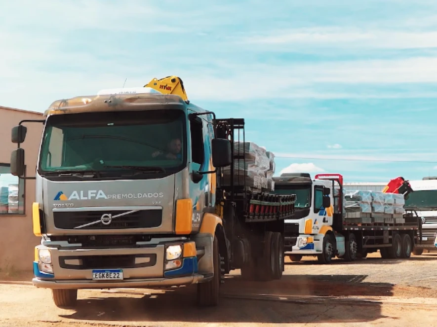 A Alfa Pre Moldados vem investindo continuamente no aumento de sua frota própria e na instalação de equipamentos Munck para descarga mecanizada de seus produtos. Seu amplo estoque de blocos e pisos de concreto auxiliam no atendimento de entregas num curto intervalo de tempo.